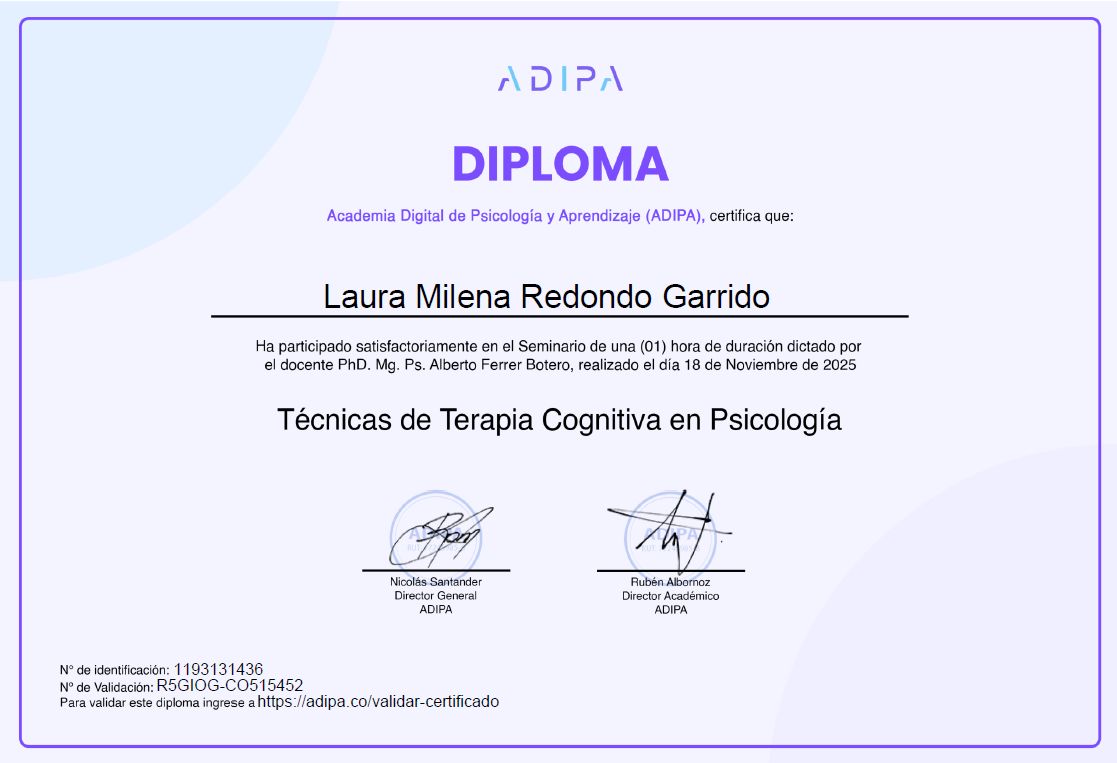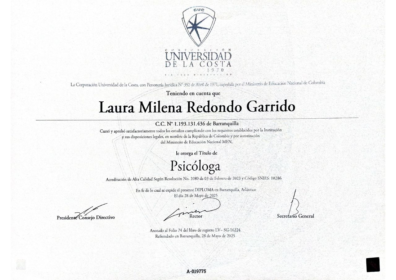 Hola, soy Laura Redondo, soy psicóloga y me encanta acompañar a personas que buscan sentirse mejor consigo mismas. Sé que pedir ayuda puede generar dudas, por eso intento que la terapia sea un espacio cálido, seguro y respetuoso, donde puedas hablar con libertad y sin miedo a ser juzgado.
