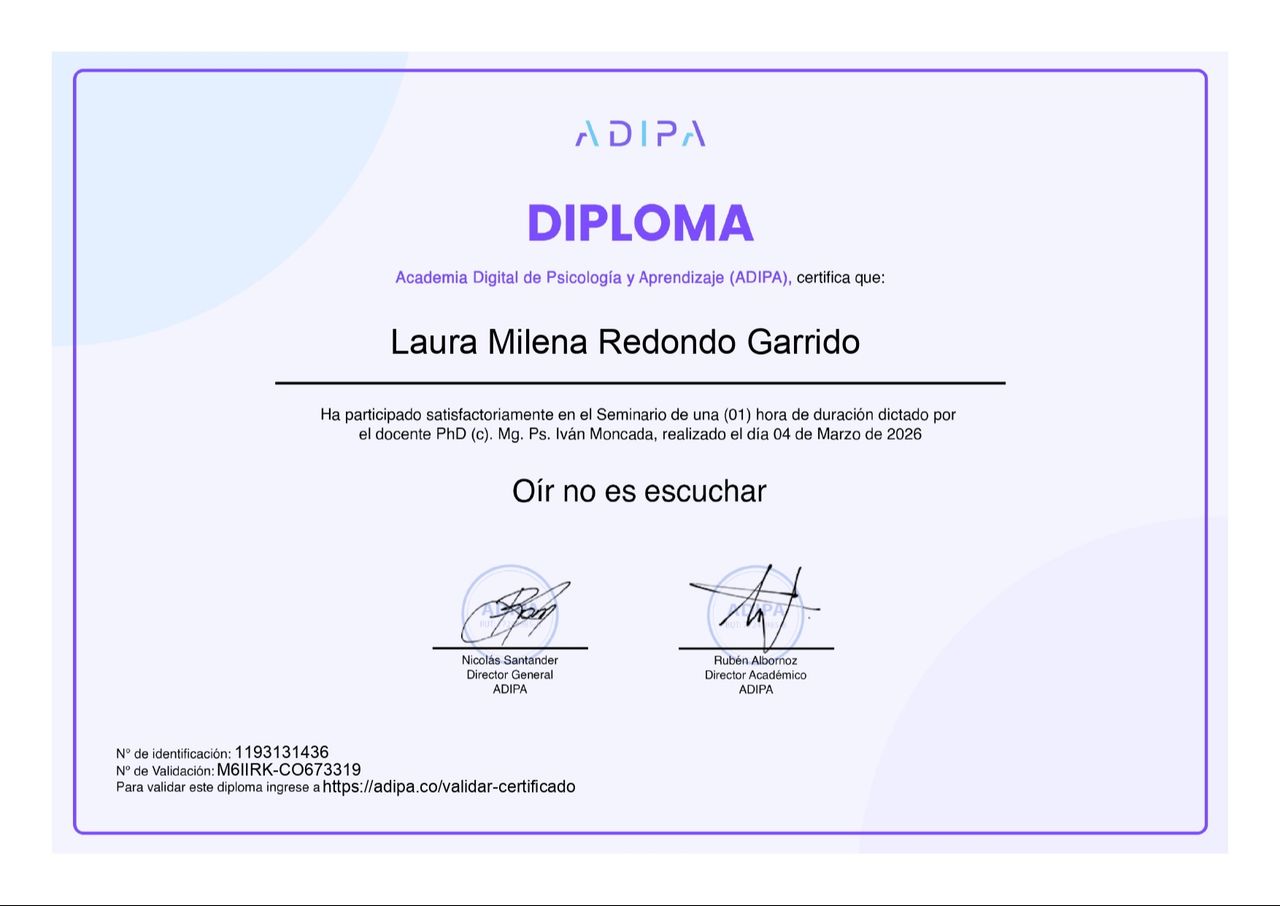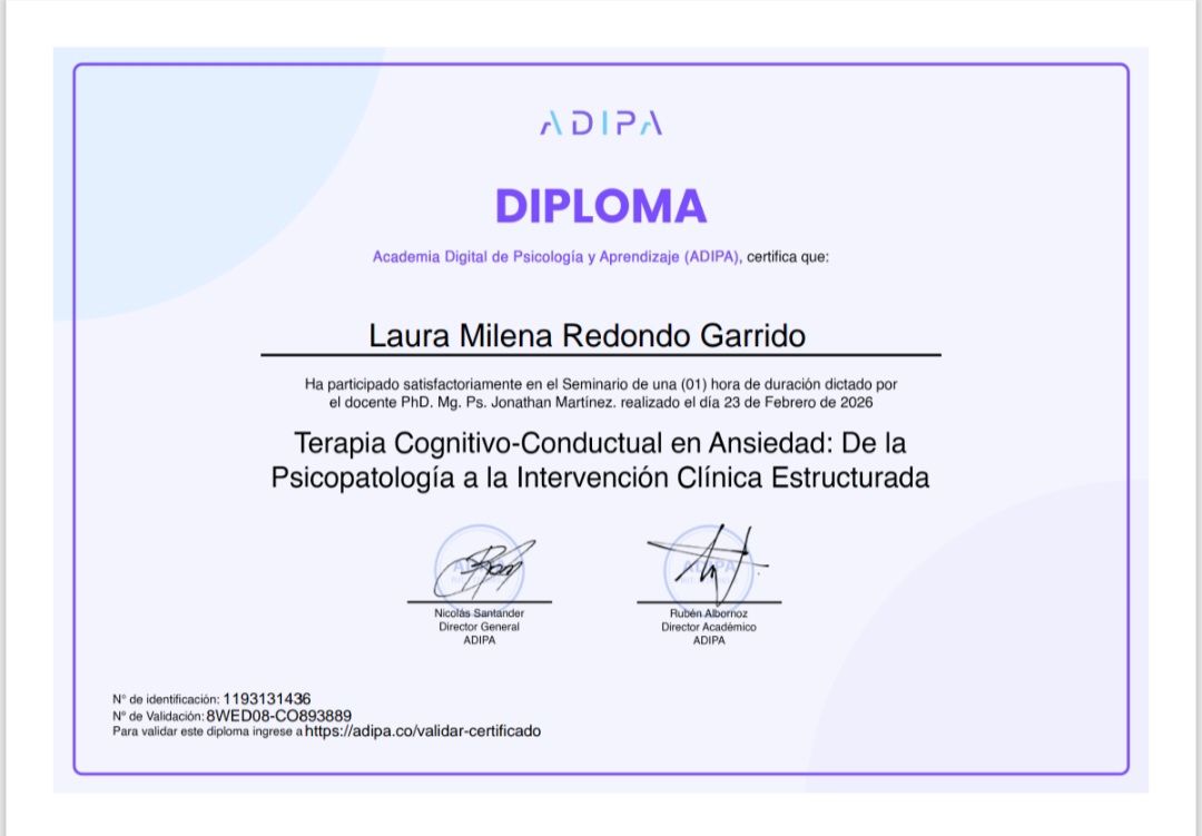 Hola, soy Laura Redondo, psicóloga. Acompaño a las personas a comprender mejor sus emociones y a desarrollar herramientas prácticas para manejar el malestar emocional.